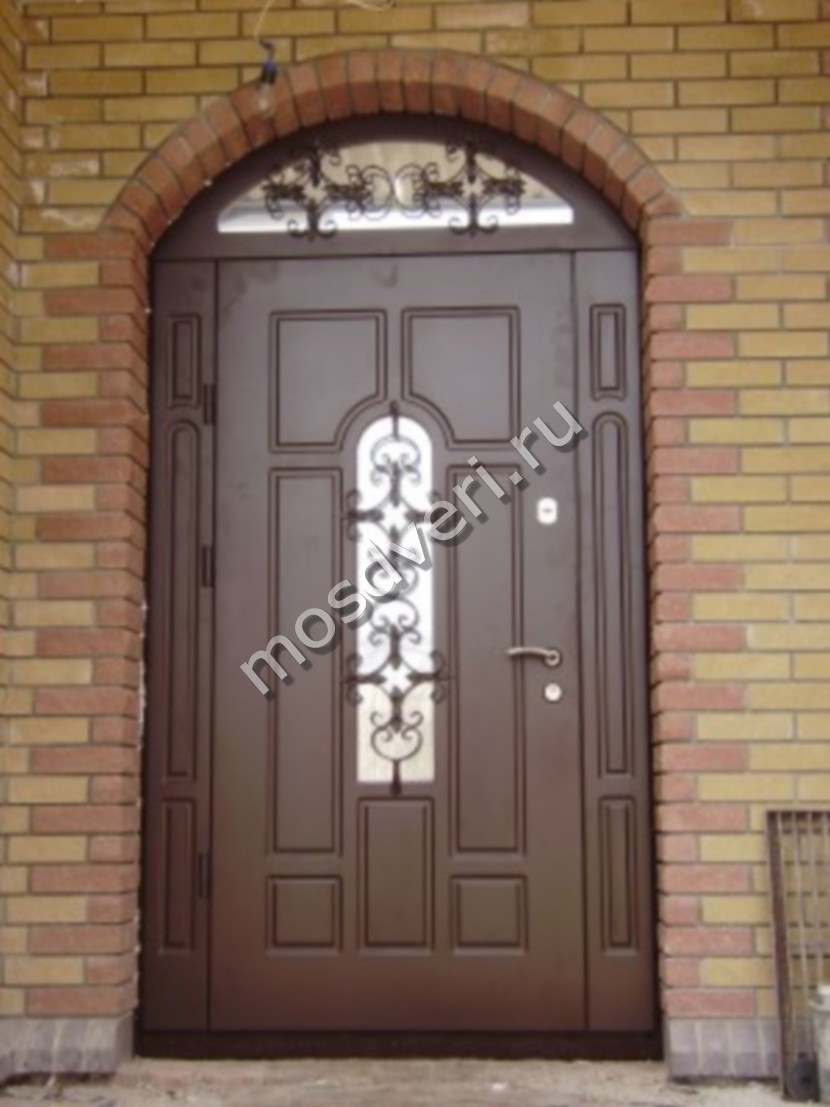 В металлических входных дверях мы используем только безопасное стекло - триплекс или закаленное. Такое стекло выдерживает удары и при повреждении не образует острых осколков. Для частного дома рекомендуем модели с энергосберегающим стеклопакетом - он сохраняет тепло внутри. Стальная рама вокруг стекла имеет декоративное напыление под бронзу или хром. Уличная дверь со стеклом может комплектоваться зеркалом с внутренней стороны. Цена зависит от типа стекла и размера вставки.